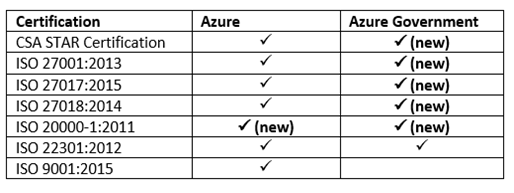 In addition to the above mentioned ISO standards, Microsoft’s compliance offerings include regional certifications for global locales and other international standards organizations. For a full list of compliance offerings from Microsoft click here.